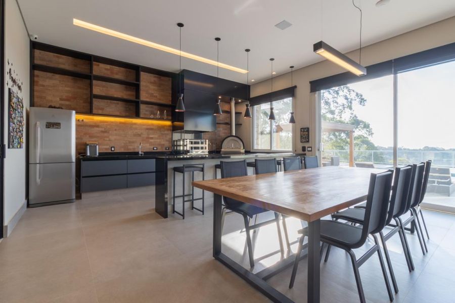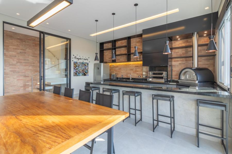 • Espaço gourmet completo com churrasqueira, forno de pizza e mesa ampla para receber convidados