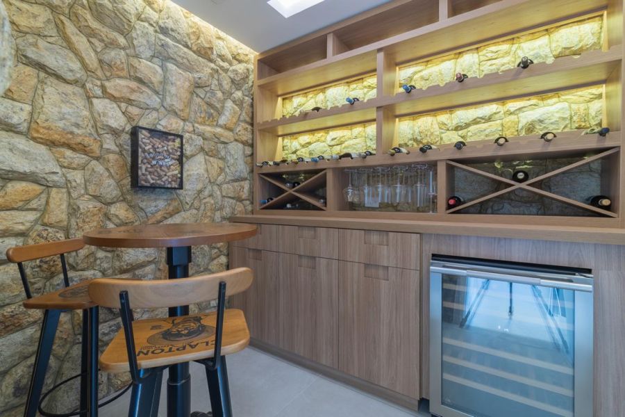 • Adega climatizada com capacidade para aproximadamente 250 garrafas